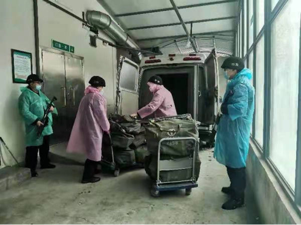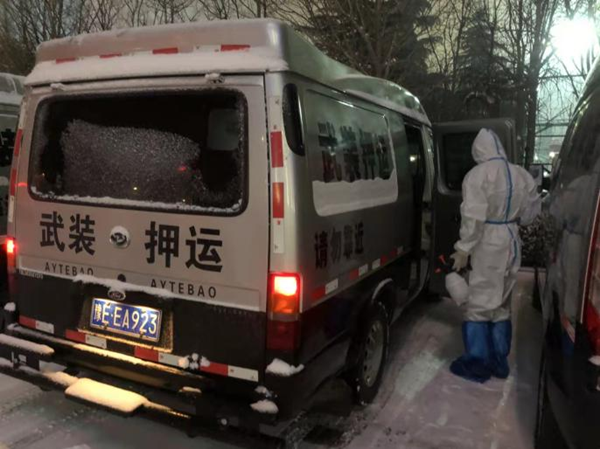 早上6點(diǎn),我們的押運(yùn)車緩緩駛出中行大門。靜謐的街道,隨處可見的圍擋,戒備森嚴(yán)、如臨大敵的檢查點(diǎn),時(shí)刻提醒著大家疫情的嚴(yán)重狀況和全社會(huì)為抗疫所做出的努力。通過檢查點(diǎn)時(shí),看著認(rèn)真負(fù)責(zé)的工作人員,大家心里一暖,我們不是孤軍,戰(zhàn)勝疫情的信念更堅(jiān)定了。