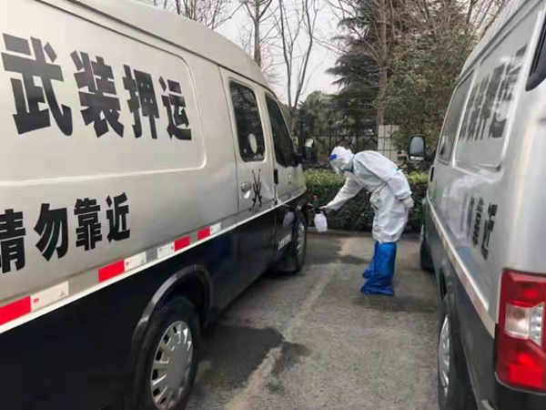 簡(jiǎn)單的早餐過后,同志們按照《疫情防控期間押運(yùn)應(yīng)急工作預(yù)案》開始了出車前的準(zhǔn)備工作,辦公區(qū)域和押運(yùn)車輛的消殺、防護(hù)裝備的檢查與消毒,一切都做的一絲不茍。