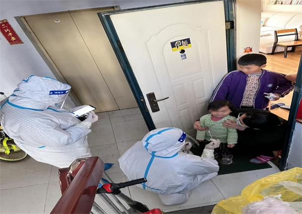 “這邊的業(yè)主請您按序排隊,別插隊,咱們是按照十人一組的順序來的,別慌,很快!”這是韓秀紅和李曉茜每天說的最多的一句話。剛開始,很多業(yè)主對他們不理解,不耐煩,她們總是耐心地對業(yè)主們微笑解釋。隨著核酸測試次數(shù)的增加,業(yè)主們對她們的工作也開始理解,也主動配合她們的工作。針對那些居家隔離或不方便下樓做核酸的業(yè)主,她們就和醫(yī)護(hù)人員一起上門幫業(yè)主做核酸。每一次核酸檢測結(jié)束后,她倆重新戴上手套,拿上掃把,對核酸現(xiàn)場再進(jìn)行清理收尾工作。