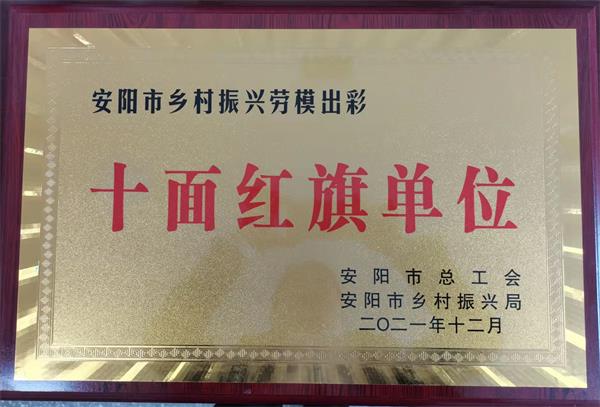 公司榮獲2021年安陽(yáng)市鄉(xiāng)村振興勞模出彩“十面紅旗單位”榮譽(yù)稱號(hào)