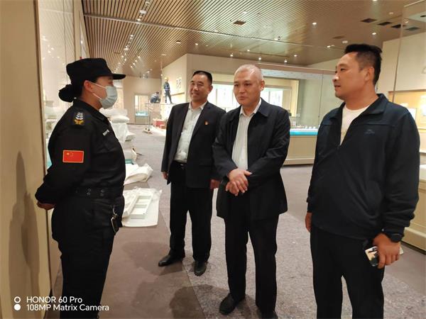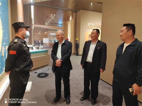 在殷墟博物館,魏東拜訪了殷墟博物館黨總支書記、常務(wù)副館長趙清榮和副館長徐河建,深入了解館方需求以及安保工作中的不足之處。趙清榮對特保大隊殷墟中隊認(rèn)真負(fù)責(zé)的工作態(tài)度給予了充分肯定。魏東表示,公司將按照博物館領(lǐng)導(dǎo)要求和合同約定,全力以赴做好新展館開館前的各項安保工作。隨后,魏東來到殷墟新展館,認(rèn)真查看駐點勤務(wù)情況,詳細(xì)了解特保隊員的工作環(huán)境和思想動態(tài)。魏東強調(diào),目前新展館處于施工沖刺和前期布展的關(guān)鍵階段,特保隊員一定要克服困難,履職盡責(zé),為新展館順利開館提供安全保障。