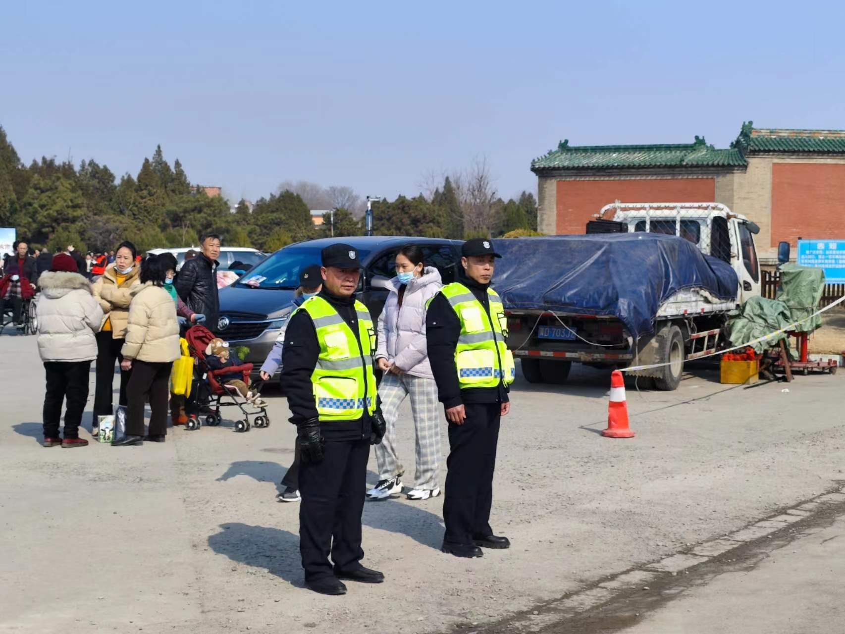 廟會活動(dòng)當(dāng)天,人防分公司及人防各大隊(duì)干部現(xiàn)場全程參與、靠前指揮,根據(jù)現(xiàn)場人流、車流情況適時(shí)調(diào)整安保部署。安保人員充分履行職責(zé),文明執(zhí)勤、熱情服務(wù),按照分工要求,靈活采取出入分流、分段隔離、梯次進(jìn)入等方式,積極引導(dǎo)廣大群眾有序參加活動(dòng),有力維護(hù)了現(xiàn)場及周邊秩序。在外部協(xié)助重點(diǎn)路段交通管制,減輕交通壓力,防止周邊路段車輛大面積擁堵及交通事故的發(fā)生。