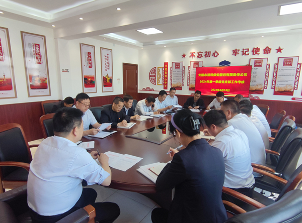 4月18日下午,黨委副書記、監(jiān)事長張錫軍主持召開專題會議,對2024年第一季度黨支部工作考核進行安排部署,他強調,公司近年來黨建工作在國企中成績較為突出,想要樹立洹河保安黨建特色品牌是一個長期的過程,各黨支部要高度重視,按照《公司關于對黨支部工作考核的通知》要求及評分細則,認真準備相關資料,配合好黨委考核工作。