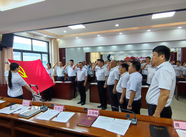 在王高峰同志帶領(lǐng)下,面對鮮紅的中國共產(chǎn)黨黨旗,16名新黨員舉起右拳、莊嚴(yán)宣誓,許下錚錚誓言。全體老黨員一同重溫入黨誓詞,時(shí)刻不忘自己的政治身份,無愧于共產(chǎn)黨員的光榮稱號。