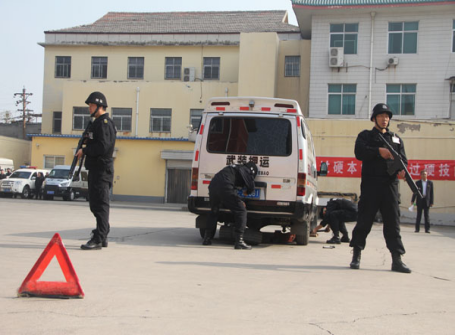 公司領(lǐng)導(dǎo)陪同有關(guān)部門領(lǐng)導(dǎo)觀摩守押分公司崗位大練兵考核