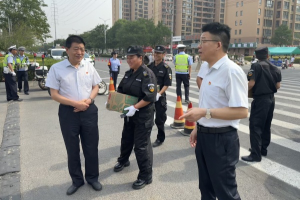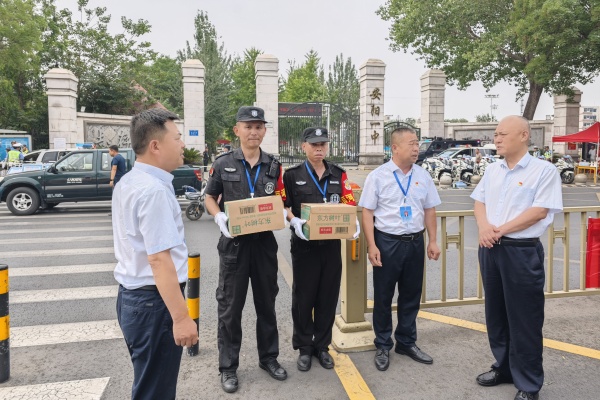 為切實(shí)做好高考期間安全保障工作,確??忌鷵碛邪踩?、有序的考試環(huán)境,6月7日上午,公司領(lǐng)導(dǎo)班子深入市區(qū)各高考考點(diǎn),實(shí)地檢查督導(dǎo)高考安保工作,并親切慰問堅(jiān)守一線的執(zhí)勤保安員,為他們送去防暑降溫物資和公司的關(guān)懷問候。