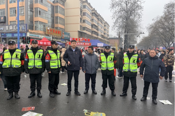 廟會(huì)當(dāng)日清晨4時(shí),全體執(zhí)勤人員頂風(fēng)冒雨、不畏嚴(yán)寒,準(zhǔn)時(shí)到崗到位。公司領(lǐng)導(dǎo)班子深入重點(diǎn)區(qū)域督導(dǎo)檢查;執(zhí)勤隊(duì)員積極配合交管部門開展交通管控、疏導(dǎo)人流車流、保障應(yīng)急通道暢通,加密重點(diǎn)區(qū)域巡邏頻次,及時(shí)勸阻違規(guī)行為,全力維護(hù)現(xiàn)場(chǎng)秩序。