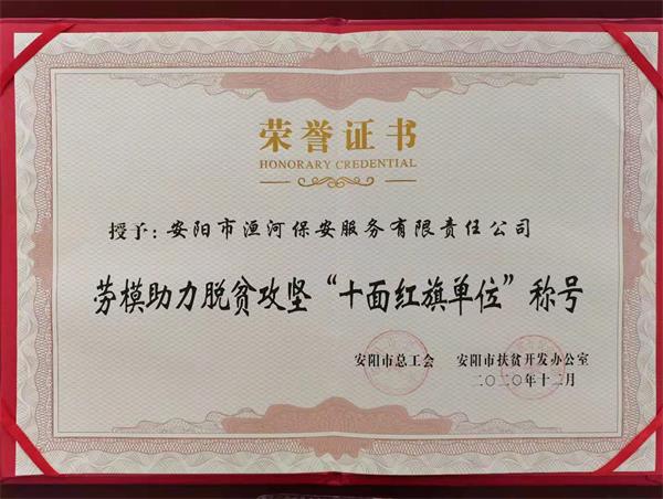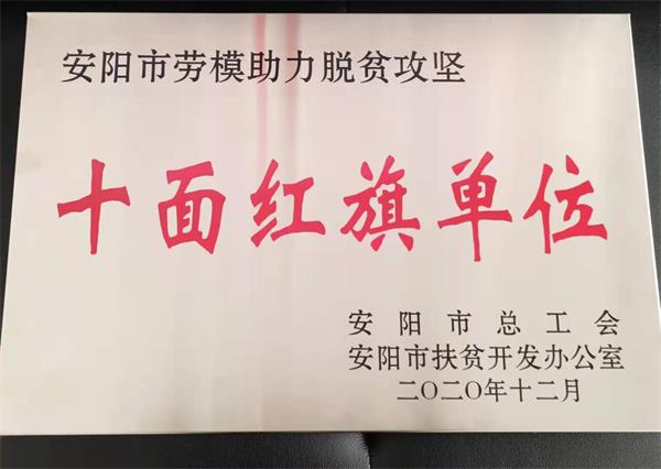 公司榮獲安陽(yáng)市勞模助力脫貧攻堅(jiān)“十面紅旗單位”榮譽(yù)稱號(hào)