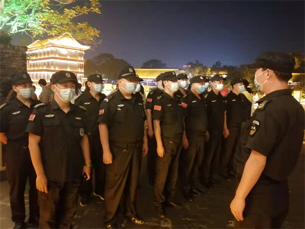 由于活動在國慶節(jié)期間舉辦,又是安陽古城倉巷街網(wǎng)紅打卡地,逛街、游玩人員流量大的聚集區(qū)、人員復雜。為避免觀看區(qū)域人員發(fā)生擁擠、踩踏意外事故,人防五大隊會同人防分公司領導提前進行兩次實地查看現(xiàn)場,制定勤務方案、周密組織、精心部署,抽調(diào)有經(jīng)驗的安保執(zhí)勤隊員參戰(zhàn),嚴格落實疫情防控措施,在安保工作中盡職履職,嚴格堅持高標準和細致、精致的作風,樹好洹河保安形象。