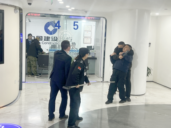 本次演練模擬了銀行員工在日常業(yè)務(wù)辦理過程中遇到歹徒搶劫的情景。客戶們正在有序辦理業(yè)務(wù),突然一名偽裝成普通客戶的“劫匪”手持兇器闖入大廳,企圖實施搶劫。面對這一突如其來的緊急情況,大堂經(jīng)理第一時間按下報警按鈕,并迅速通知安保部門報告情況。同時,保持冷靜爭取時間等待警察到來。與此同時,其他員工也迅速行動起來,有的則隱蔽地點記錄“劫匪”的動向,以便為后續(xù)提供好的線索。網(wǎng)點安保人員與“警方”保持緊密溝通,協(xié)助警方制定救援計劃。在警方的精心部署下,最終成功將“劫匪”制服并帶離現(xiàn)場。