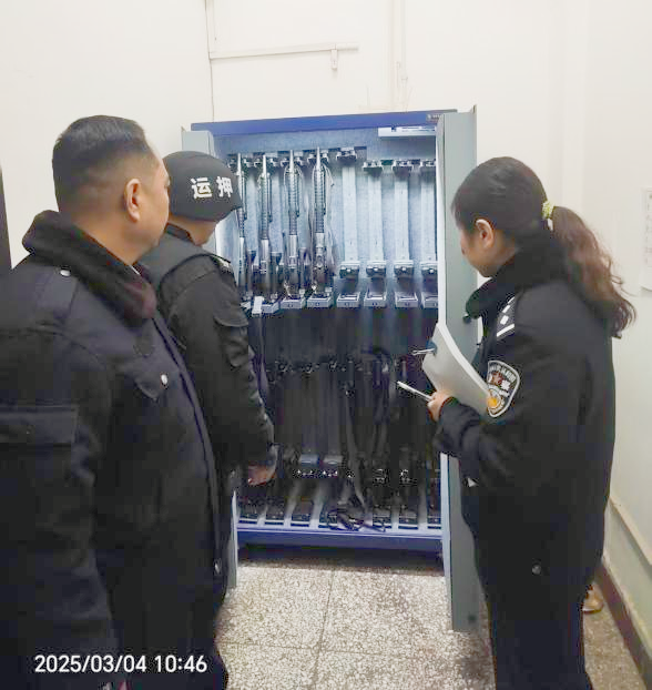 3月4日上午,安陽市龍安區(qū)太行小區(qū)派出所社區(qū)民警王靜靜到守押十二大隊相州中隊檢查槍支彈藥,副隊長李志民陪同檢查。