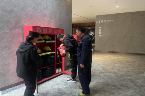檢查期間,中隊長李杰帶領特保隊員聯(lián)合物業(yè)人員組成檢查小組,對徽文館、博文館微型消防站內(nèi)消防設施、消防聯(lián)動報警器、手動報警器等設備進行逐一檢查。測試了消火栓水槍壓力,對消防通道、安全出口、疏散通道是否暢通,應急照明燈、疏散指示表是否配置齊全并保持完好有效,滅火器是否定期器材維護保養(yǎng)等情況進行排查。