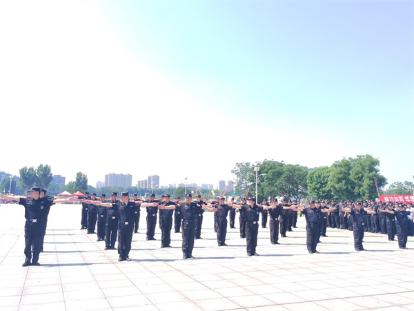 5月24日,公司大練兵考核組在殷墟廣場對人防分公司五個大隊練兵情況進行考核,全面檢驗各大隊的隊列訓練、交通指揮、文明禮儀崗展示、校園反恐演練、消防技能實操等項目練兵成效。