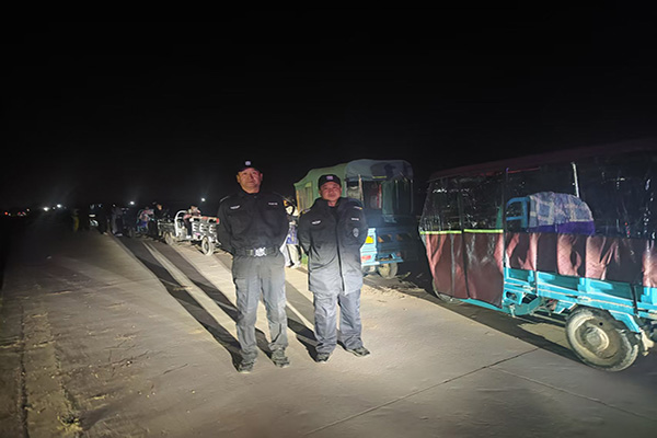 勤務(wù)期間,大隊(duì)長(zhǎng)王向煜多次前往收割現(xiàn)場(chǎng),指導(dǎo)各項(xiàng)安保制度落實(shí)情況,及時(shí)協(xié)調(diào)解決實(shí)際問(wèn)題,為中棉所收割工作的安全提堅(jiān)實(shí)供了的保障。
