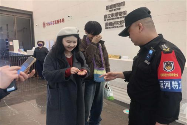 2026年農(nóng)歷新春佳節(jié)期間,中國文字博物館、中國文字博物館續(xù)建、殷墟博物館三大場館累計接待游客30萬人次。面對假期大客流、高密度、高關(guān)注度的嚴(yán)峻挑戰(zhàn),特保大隊(duì)嚴(yán)格貫徹落實(shí)各場館工作部署,始終堅(jiān)守文化遺產(chǎn)保護(hù)與游客安全保障雙重使命,以最高標(biāo)準(zhǔn)、最嚴(yán)要求、最實(shí)舉措,統(tǒng)籌抓好安全防范、秩序維護(hù)、應(yīng)急處置、暖心服務(wù)等各項(xiàng)工作,圓滿實(shí)現(xiàn)春節(jié)假期安全零事故、服務(wù)零投訴、運(yùn)行零隱患的總體目標(biāo)。