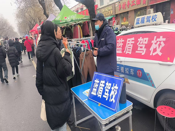 3月4日(農(nóng)歷正月十六),盡管天空飄起蒙蒙細雨,但安陽橋古廟會依舊人頭攢動、熱鬧非凡。藍盾駕校、鼎信公司緊扣民俗節(jié)點,深入廟會現(xiàn)場開展駕培駕考便民宣傳服務活動,將報名、培訓、考試等一站式服務送到群眾身邊,真正實現(xiàn)服務“零距離”。