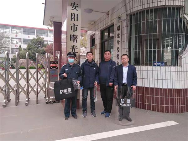 3月31日上午,人防三大隊副大隊長劉慶剛、校園中隊中隊長洪懷軍、班長趙付山一行,帶著頭盔、盾牌、鋼叉、防刺背心等安保器材,深入到各個校園進行發(fā)放。