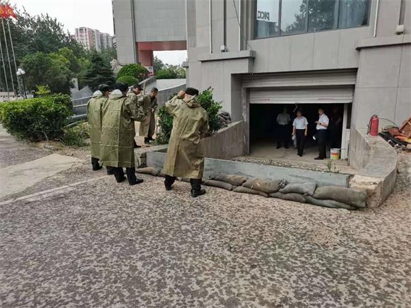 隊員們快速穿上雨具,對阻塞排水口進行疏通,并將一袋袋沙袋堵住各個入口,防止雨水滲進入地下金庫、車庫。與此同時,隊員組織營業(yè)大廳內(nèi)人員的疏散和撤離到安全地帶。