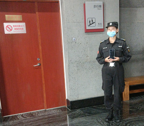 下午3點半,一名游客慌慌張張來到安檢處,尋問是否有人拾到手機。特保隊員馬上把游客帶到安保部,經(jīng)過安保部工作人員認(rèn)真核實,確認(rèn)游客為失主,將手機交還與她。工作人員同時將特保隊員拾到手機,及時上交的情況告訴游客。