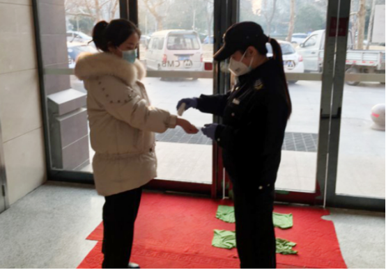 特保大隊五中隊女隊員李方,是一名普普通通的特保隊員,日常工作是負責招商銀行營業(yè)廳的安全保衛(wèi)工作,除了把日常的工作開展好,在本次疫情發(fā)生之后,她每日主動配合銀行領導給員工、顧客測量體溫,進行消毒工作,堅持一線,守護安全。