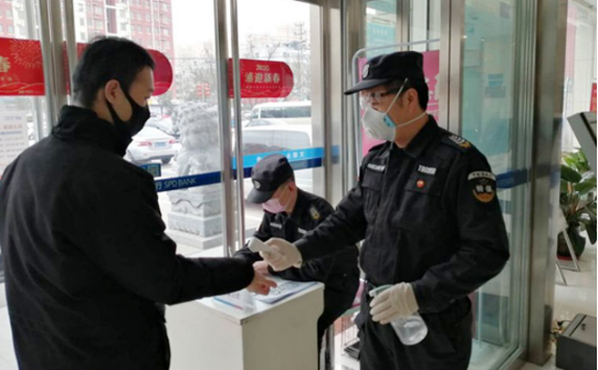 疫情期間,為防止病毒擴(kuò)散傳染,浦發(fā)銀行保安班保安員放棄節(jié)假日休息,滿員滿點(diǎn)上崗。隊(duì)員層層動(dòng)員、壓實(shí)責(zé)任,將學(xué)習(xí)到的各種防控疫情知識(shí)落實(shí)到工作中,確保自身和客戶的安全。首先隊(duì)員做好自我保護(hù),按照要求,上崗戴口罩,手套。其次,他們堅(jiān)持對(duì)進(jìn)出銀行的每位員工,以及辦理業(yè)務(wù)的每位客戶量體溫、做登記、進(jìn)行個(gè)人消毒、詢問其是否去過疫區(qū)。