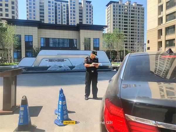 連日來,室外氣溫升至40多度。但是,人防三大隊(duì)派駐在海悅光明城售樓處的保安隊(duì)員們,依然在烈日的炙烤下,每天8個(gè)小時(shí)不停的奔波,指揮車輛停放,做好巡邏登記巡查工作。他們沒有警亭遮陽傘,烈日曬黑了臉龐,身上的衣服干了又濕、濕了又干,只為守護(hù)客戶單位和業(yè)主們的平安。