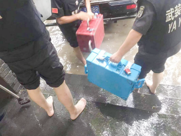 執(zhí)行勤務過程中,各車組遇到多處因網(wǎng)點周邊積水、款箱難以送達的情況,大隊領導積極與銀行保衛(wèi)部門聯(lián)系、溝通,車組隊員團結一心,不怕困難,采取赤足涉水等方法將款箱安全送達網(wǎng)點,保障了銀行網(wǎng)點正常營業(yè),得到了客戶單位的廣泛好評。