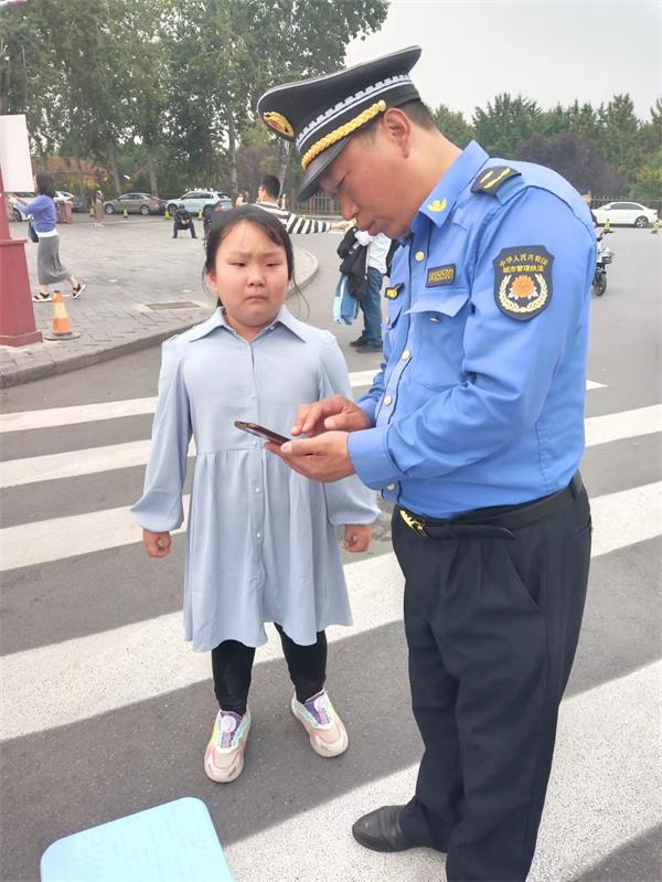 當(dāng)日中午12:25許,駐殷墟商魂廣場(chǎng)保安班班長(zhǎng)郭國(guó)峰正在執(zhí)勤,發(fā)現(xiàn)有一個(gè)大約八歲左右的小女孩站在路旁哭泣,忙上前關(guān)切的詢問,原來是女孩和父母走散了。郭國(guó)峰問,你知道爸爸的電話嗎?小女孩說知道。郭國(guó)峰隨用自己的手機(jī)給其家人取得了聯(lián)系。并告訴他和小女孩的位置,同時(shí)匯報(bào)了帶班領(lǐng)導(dǎo)商鄉(xiāng)長(zhǎng)。商鄉(xiāng)長(zhǎng)邊拿起礦泉水讓小女孩喝,邊安慰她。
