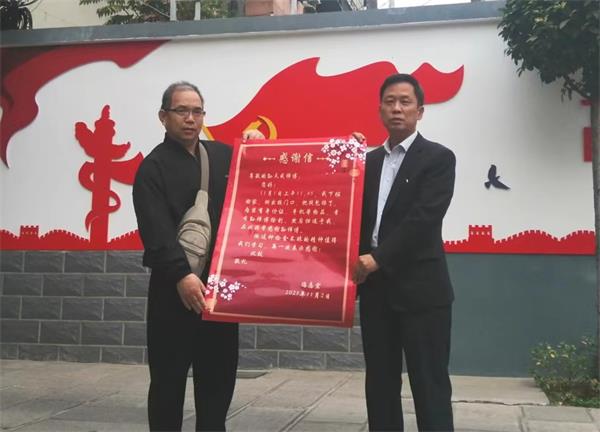 2023年11月3日上午10:30許,人防二大隊(duì)收到一封印刷體的感謝信。感謝信由失主愛人馮先生專程送達(dá),表揚(yáng)了校園保安孫天成拾金不昧的事跡。