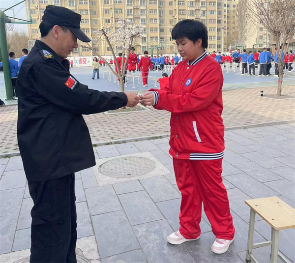3月16日,市八中一名女學生來到學校門崗,將一紙感謝信送到人防三大隊派駐該校保安班中隊長楊海順手中,感謝楊海順撿到她遺失的電話手表。