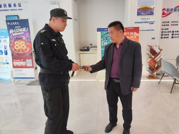 4月14日上午11時許,郜科成如往常一樣對網(wǎng)點自助服務(wù)區(qū)進行安全巡檢。在ATM機旁的操作臺上,一部嶄新的智能手機靜靜地躺著?!斑@個位置人流密集,失主肯定急壞了!”憑借多年安保工作經(jīng)驗,郜科成第一時間將手機交給網(wǎng)點主管,并協(xié)助調(diào)取監(jiān)控確認失主離開時間。通過聯(lián)系手機運營商和公安系統(tǒng)協(xié)助,網(wǎng)點工作人員很快鎖定失主信息。原來,李先生匆忙辦理業(yè)務(wù)時不慎遺落手機,彼時正心急如焚地折返尋找。當(dāng)接到銀行電話時,他難掩驚喜:“本來都做好最壞打算了,沒想到你們這么快就聯(lián)系上我了!”面對失主送來的感謝,郜科成靦腆地擺擺手:“這都是份內(nèi)事,領(lǐng)導(dǎo)一直教我們要把客戶的事放在心上?!?