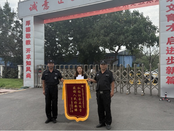 “太感謝袁隊長了!要不是他細心,我這電動車說不定就丟了,真是幫了我大忙!”9月3日下午,一位家長拿著書寫“弘揚社會正能量 感謝人民好安保”的錦旗來到晝錦堂學(xué)校門口,她緊緊握著保安隊員的手連聲道謝,臉上滿是感激。這溫暖的一幕,源于技防分公司中隊長袁秋生對一輛未鎖電動車的細心保管。