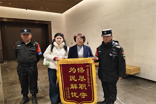 2026年2月26日下午,曾在殷墟博物館不慎遺失金戒指的趙女士專程返回館內(nèi),將一面印有感謝話語的錦旗送到工作人員手中,對殷墟博物館特保隊(duì)員認(rèn)真負(fù)責(zé)、熱心為民的暖心服務(wù)致以誠摯謝意。