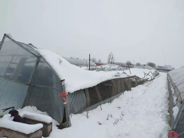 當(dāng)日一大早,申春林就帶領(lǐng)物業(yè)公司辦公室、應(yīng)急辦的人員深入到各項(xiàng)目單位,查看雪后災(zāi)情。在致中苑小區(qū)、電業(yè)局頤欣園小區(qū),申春林看到有樹枝被雪壓斷,他指出要及時查清受損情況,清理積雪現(xiàn)場,確保居民正常出行。在蔬菜基地,有兩個大棚遭被雪壓塌陷,有不同程度損壞,但均無人員傷亡事故。目前鼎誠物業(yè)員工正在積極修復(fù)大棚,減少損失。