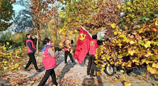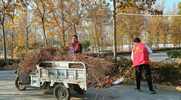 上午8點15分,黨員干部身著志愿者紅馬甲,手擎黨旗來到訓練場,大家開始分頭行動,有的騎三輪運送樹枝,有的往車上擺放,大家干的熱火朝天,石榴樹滿樹枝都是刺,楊樹下來的枝干非常碩大,大家或小心翼翼或用盡全力,進過兩個半小時的努力,將小車訓練場上樹枝清理完畢。下午2點15分,大家又重新集合,開始訓練場樹葉清理工作。直到下午5點,大家終于將訓練場整修一新。