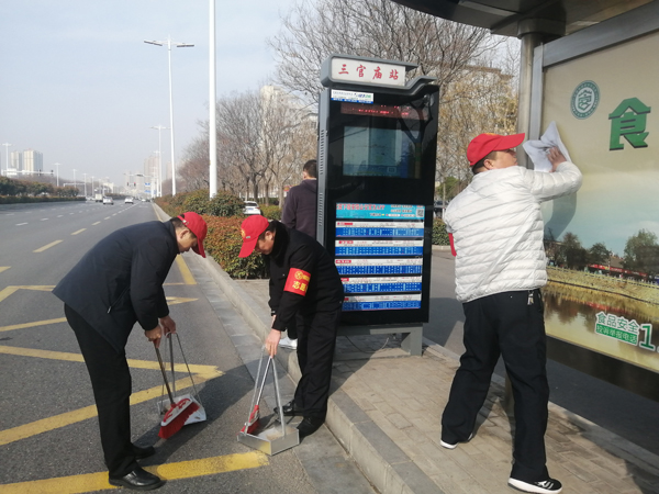 3月5日上午,第五黨支部志愿者帶著掃帚和抹布等工具,來到人民大道三官廟公交車站臺(tái)清除垃圾,清理衛(wèi)生死角?;顒?dòng)中,大家協(xié)作配合,發(fā)揚(yáng)不怕苦、不怕臟的精神,對(duì)公交站臺(tái)、人行道及路邊綠化帶內(nèi)的落葉、雜草、垃圾等進(jìn)行了全面清理打掃。經(jīng)過大家的辛勤勞動(dòng),公交站點(diǎn)兩旁的衛(wèi)生干凈整潔、煥然一新。