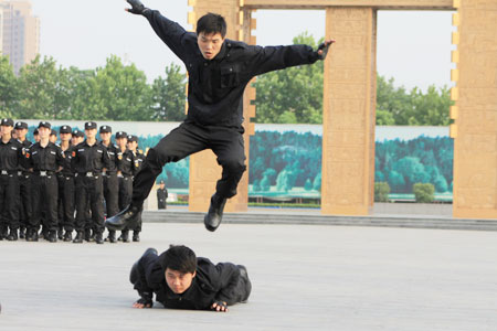 2006年,公司為促使人防保安服務(wù)由低端客戶向高端客戶升級,進(jìn)一步提升企業(yè)核心競爭力,決定實(shí)施品牌戰(zhàn)略,組建了特保大隊(duì)。大隊(duì)現(xiàn)有350余人,平均年齡24歲,其每名成員都經(jīng)過嚴(yán)格選拔和強(qiáng)度訓(xùn)練。今天的特保大隊(duì)已經(jīng)成為一支信念堅(jiān)定、作風(fēng)頑強(qiáng)、技能精湛、紀(jì)律嚴(yán)明、敢打必勝、勇于創(chuàng)新、銳意進(jìn)取的文明之師、威武之師,是公司對外展示的一張名片。